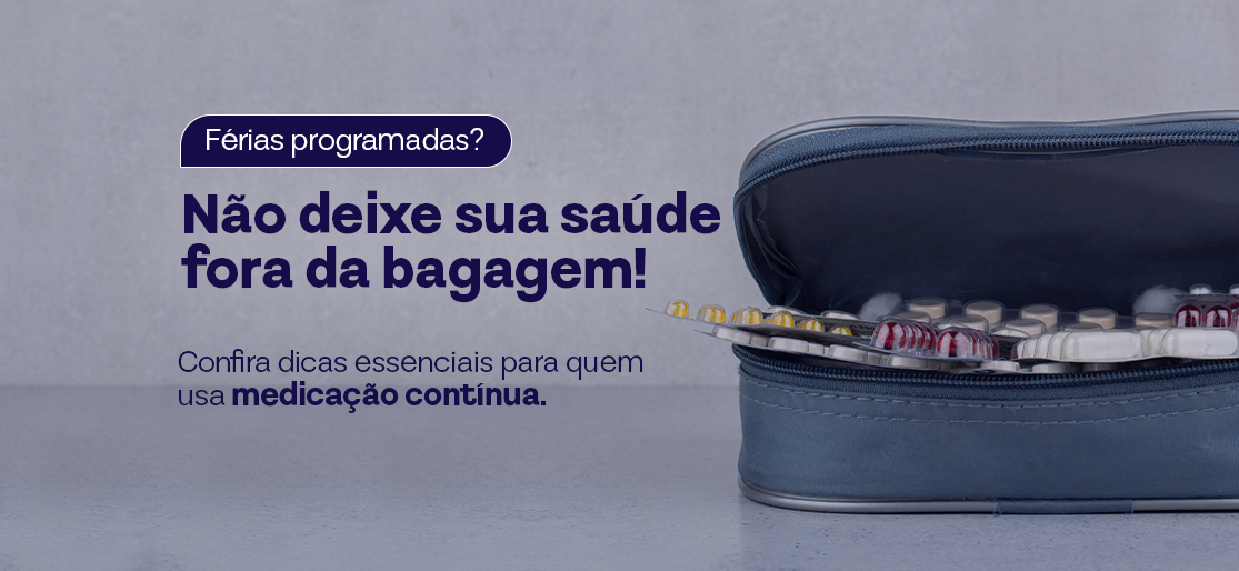 Chegou a hora de arrumar as malas e deixar tudo pronto para a viagem! Mas além de passaporte, documentos e confirmação de reserva, você também tem que tomar cuidado para ter a sua medicação de uso contínuo sempre à mão.